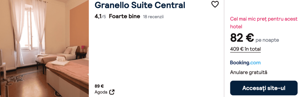 CAZARE 3: Granello Suite Central, Preț cameră dublă 409€, Preț persoană 205€, 5-10 Oct 2025 (5 nopți)