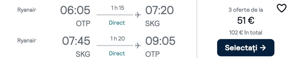 ZBOR: București -> Salonic, Preț dus-întors 51€/pers, 12-19 Iul 2025