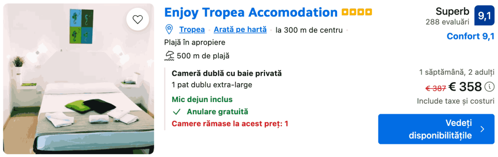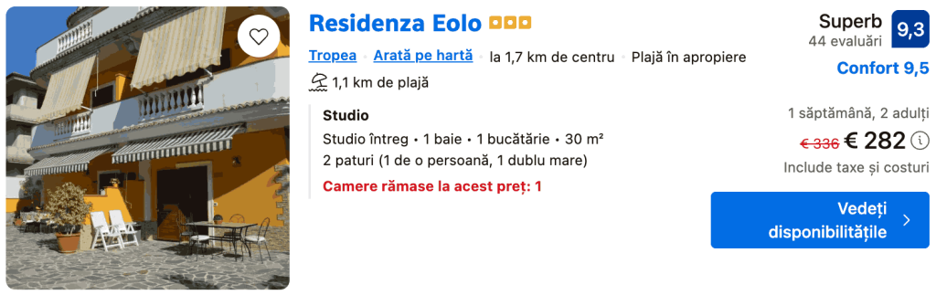 - Vacanță iefină în TROPEA 179€ zbor și cazare 7 zile