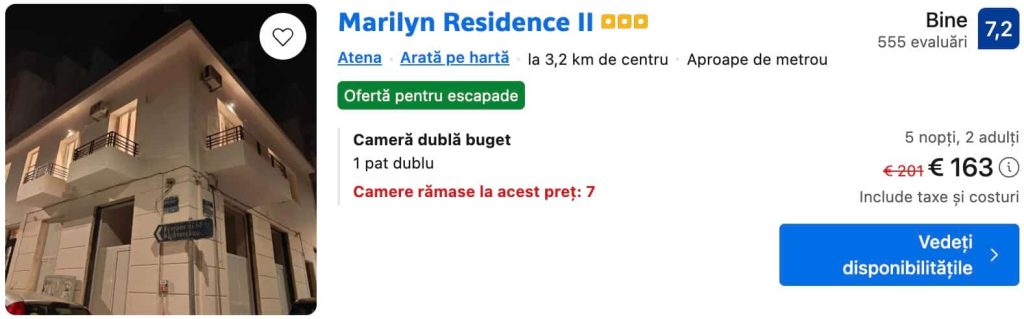 CAZARE 2: Marilyn Residence II, Preț cameră dublă 163€, Preț persoană 81€, 4-9 Iul 2026 (5 nopți)