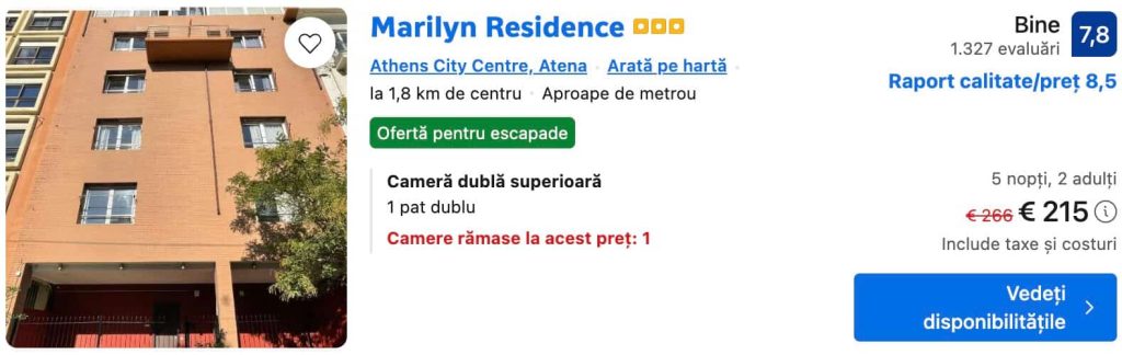CAZARE 3: Marilyn Residence, Preț cameră dublă 215€, Preț persoană 107€, 4-9 Iul 2026 (5 nopți)