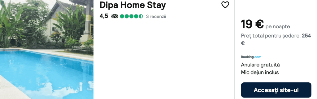 CAZARE 1 (+ mic dejun): Dipa Home Stay, Preț cameră dublă 254€, Preț persoană 127€, 22 Ian-5 Feb 2025 (14 nopți)