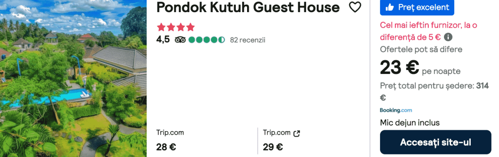 CAZARE 2 (+ mic dejun): Pondok Kutuh, Preț cameră dublă 314€, Preț persoană 157€, 22 Ian-5 Feb 2025 (14 nopți)