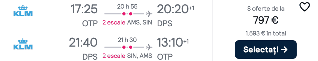 ZBOR: București -> Denpasar, Preț dus-întors 797€/pers, 21 Ian-5 Feb 2025