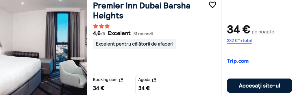 CAZARE 2: Premier Inn Barsha Heigh, Preț cameră dublă 232€, Preț persoană 116€, 8-15 Iul 2025 (7 nopți)