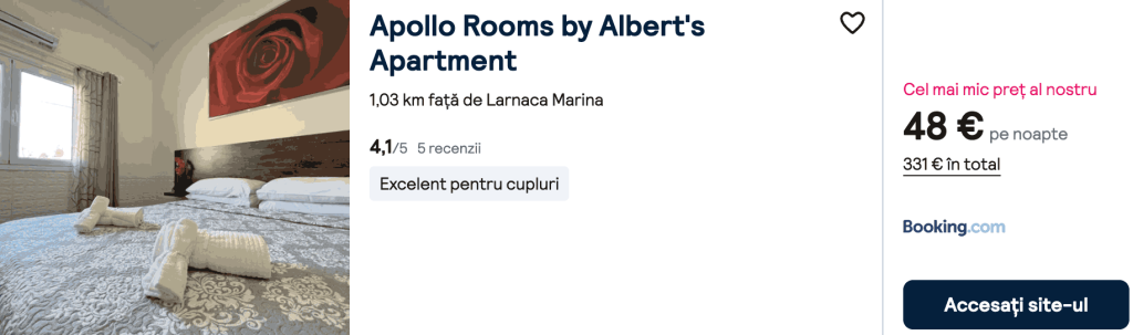 CAZARE 3 (LARNACA): Apollo Rooms, Preț cameră dublă 331€, Preț persoană 165€, 8-15 Feb 2026 (7 nopți)