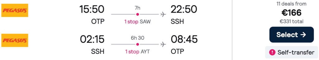 ZBOR: București -> Sharm El-Sheikh, Preț dus-întors 166€/pers, 2-10 Mar 2026