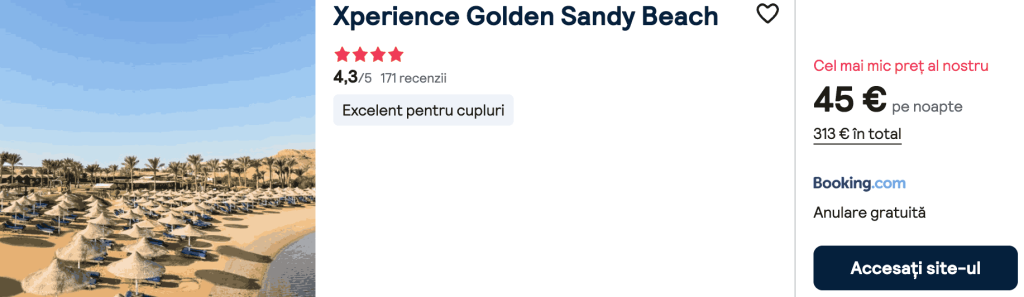 CAZARE 3: Xperience Golden Sandy, Preț cameră dublă 313€, Preț persoană 157€, 2-9 Mar 2026 (7 nopți)