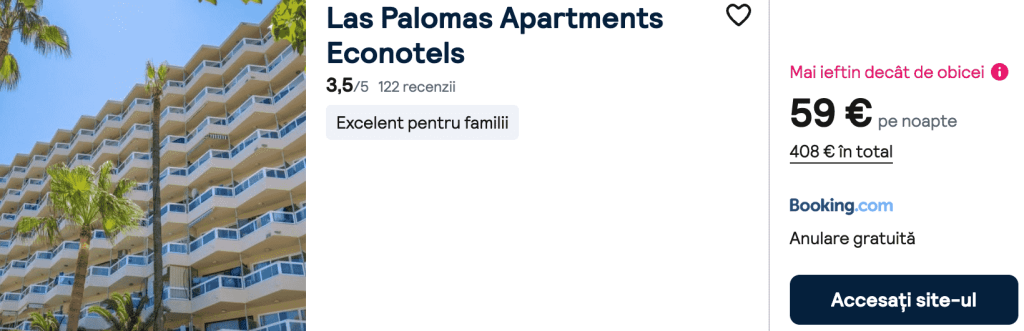 CAZARE 1: Las Palomas Apartments, Preț cameră dublă 408€, Preț persoană 204€, 31 Mar-7 Apr 2026 (7 nopți)