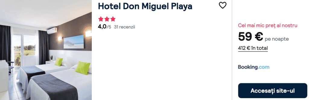 CAZARE 2: Hotel Don Miguel Playa, Preț cameră dublă 412€, Preț persoană 206€, 31 Mar-7 Apr 2026 (7 nopți)