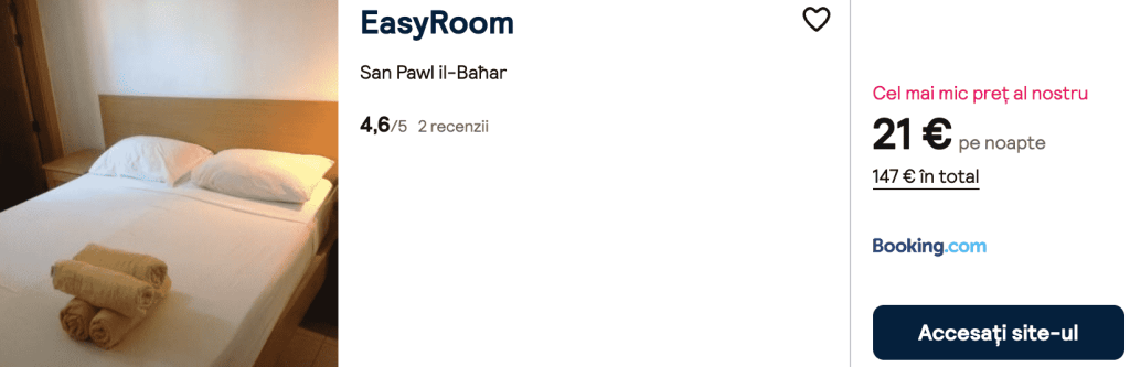 CAZARE 1: EasyRoom, Preț cameră dublă 147€, Preț persoană 73€, 17-24 Ian 2026 (7 nopți)