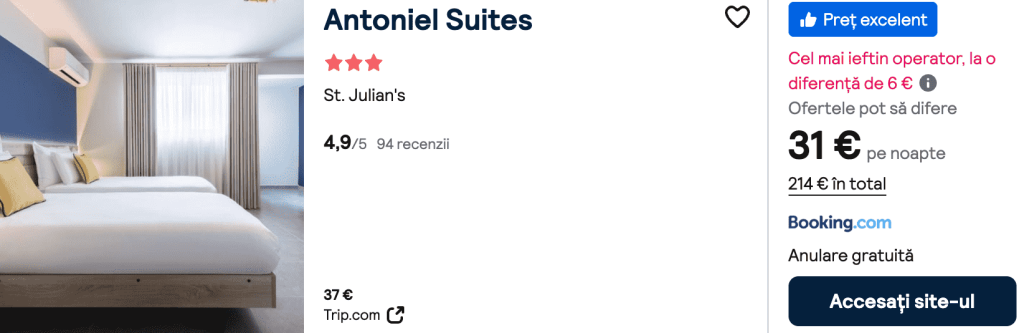 CAZARE 2: Antoniel Suites, Preț cameră dublă 214€, Preț persoană 107€, 17-24 Ian 2026 (7 nopți)
