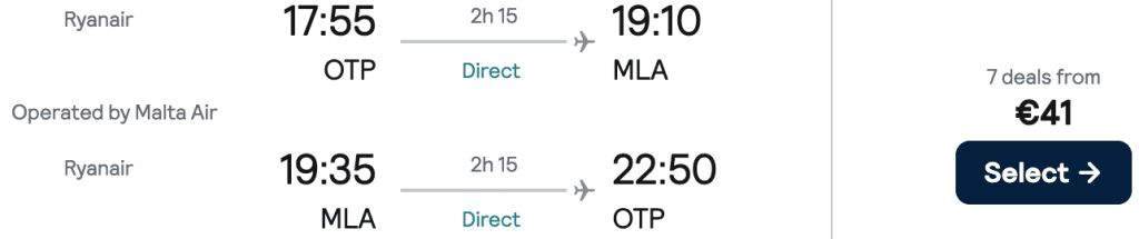 ZBOR: București -> Malta, Preț dus-întors 41€/pers, 25 Feb-4 Mar 2026