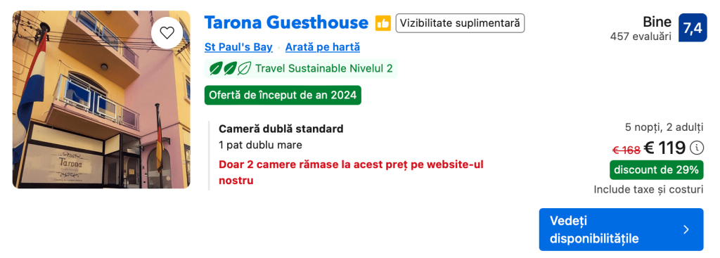 CAZARE 2: Tarona Guesthouse, Preț cameră dublă 119€, Preț persoană 60€, 8 – 13 Ian 2024 (5 nopți)