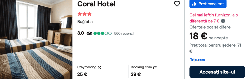 CAZARE 1: Coral Hotel, Preț cameră dublă 71€, Preț persoană 36€, 28 Ian-1 Feb 2025 (4 nopți)