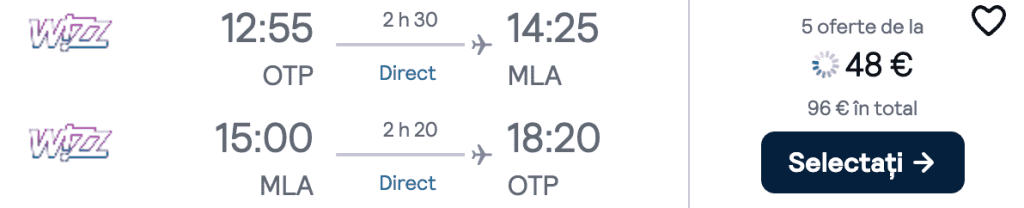 ZBOR: București -> Malta, Preț dus-întors 48€/pers, 28 Ian-1 Feb 2025
