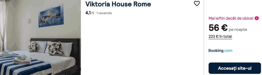 CAZARE 2: Viktoria House Rome, Preț cameră dublă 223€, Preț persoană 112€, 1-5 Feb 2026 (4 nopți)