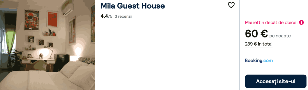 CAZARE 3: Mila Guest House, Preț cameră dublă 239€, Preț persoană 120€, 1-5 Feb 2026 (4 nopți)