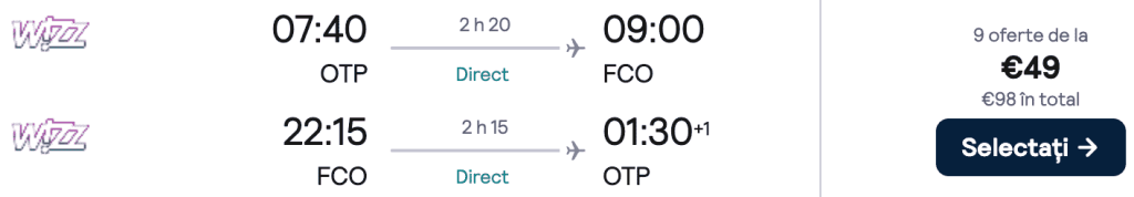 ZBOR: București -> Roma, Preț dus-întors 49€/pers, 1-5 Feb 2026