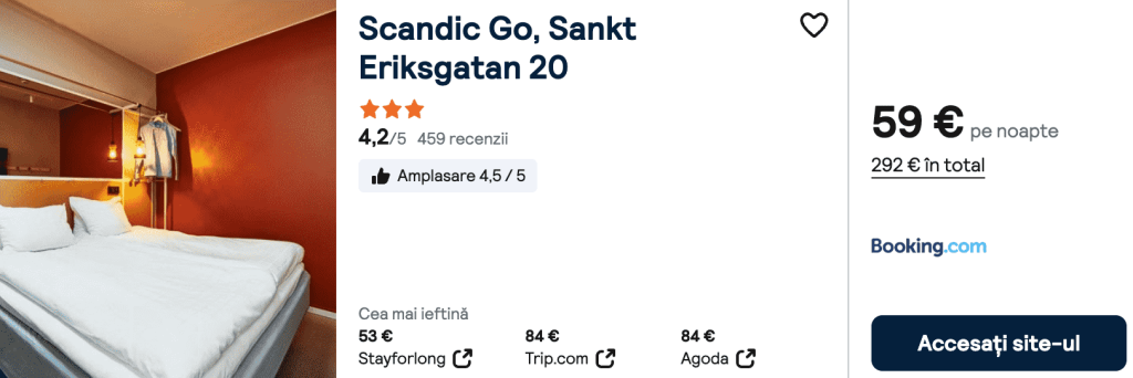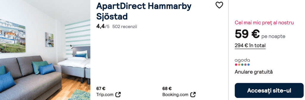 CAZARE 2: ApartDirect Hammarby, Preț cameră dublă 294€, Preț persoană 147€, 25-30 Ian 2026 (5 nopți)