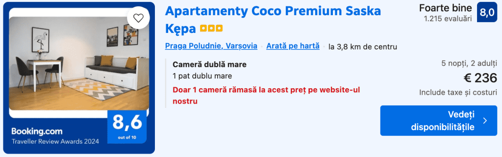 CAZARE 2: Apartamteny Coco, Preț cameră dublă 236€, Preț persoană 118€, 4-9 Feb 2026 (5 nopți)