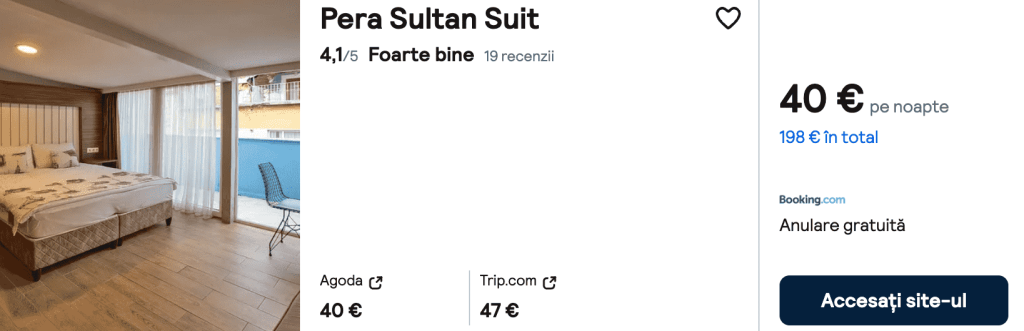 CAZARE 1: Pera Sultan Suit, Preț cameră dublă 198€, Preț persoană 99€, 21-26 Mai 2025 (5 nopți)