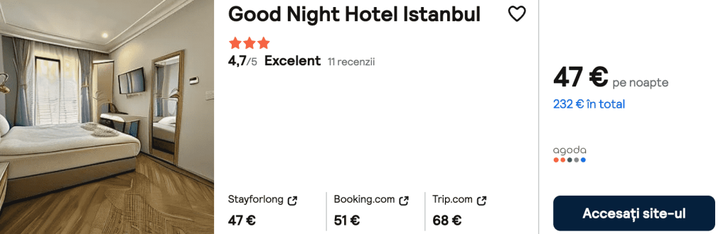 CAZARE 3: Good Night Hotel, Preț cameră dublă 232€, Preț persoană 116€, 21-26 Mai 2025 (5 nopți)
