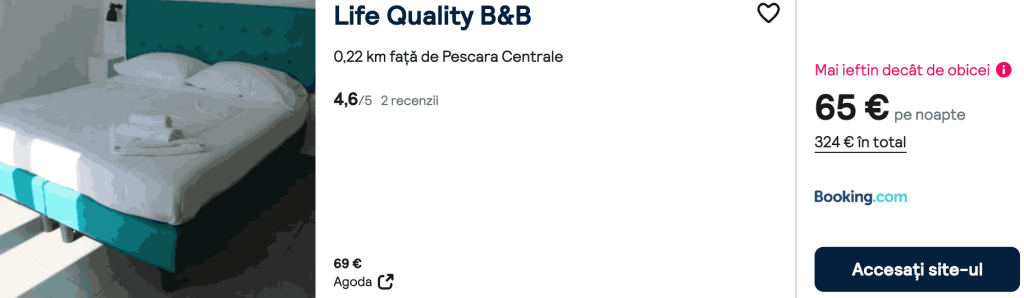CAZARE 2: Life Quality B&B, Preț cameră dublă 324€, Preț persoană 162€, 23-28 Apr 2026 (5 nopți)
