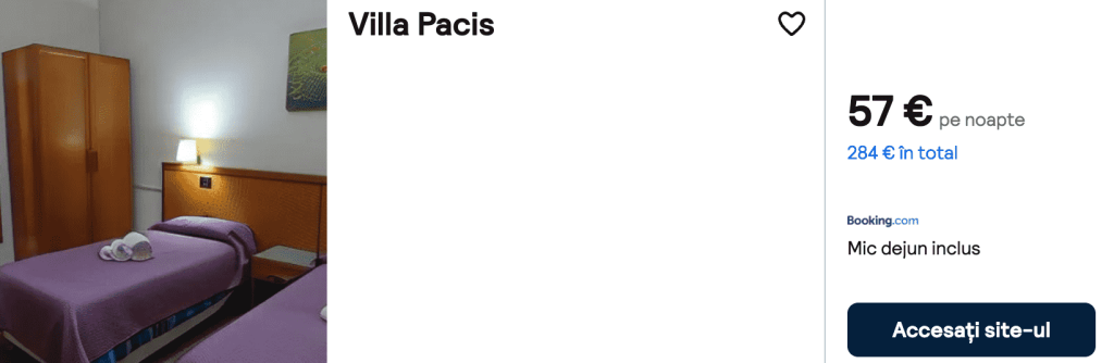 CAZARE 1 (+ Mic Dejun): Villa Pacis, Preț cameră dublă 284€, Preț persoană 142€, 4-9 Iun 2025 (5 nopți)