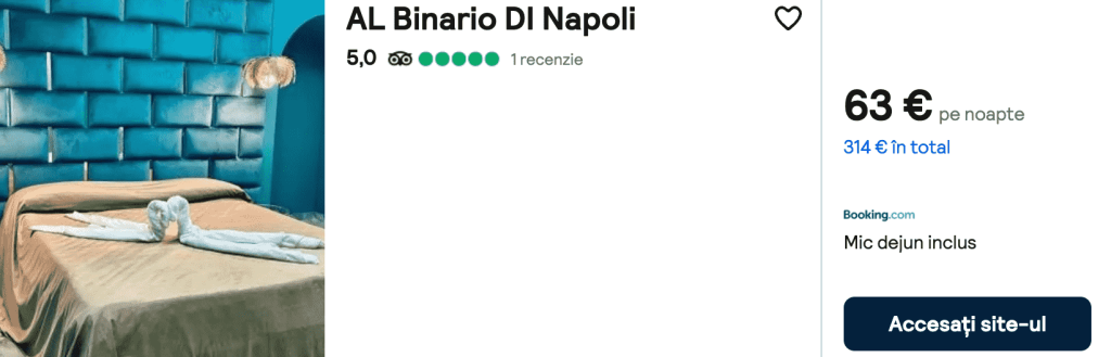 CAZARE 2 (+ Mic Dejun): Al Binario, Preț cameră dublă 314€, Preț persoană 157€, 4-9 Iun 2025 (5 nopți)