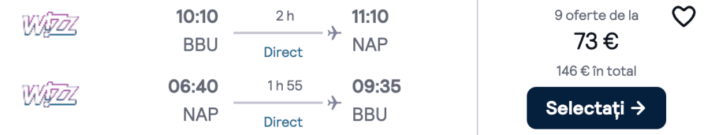 ZBOR: București Băneasa -> Napoli, Preț dus-întors 73€/pers, 4-9 Iun 2025