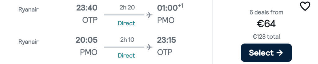 ZBOR: București -> Palermo, Preț dus-întors 64€/pers, 28 Sep-5 Oct 2025