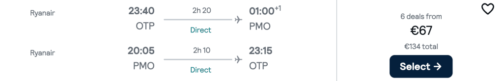 ZBOR: București -> Palermo, Preț dus-întors 67€/pers, 28 Sep-5 Oct 2025