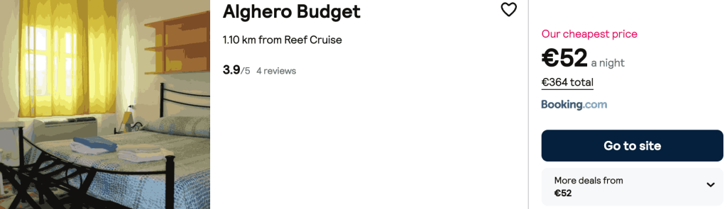 CAZARE 1: Alghero Budget, Preț cameră dublă 364€, Preț persoană 182€, 13-20 Mai 2026 (7 nopți)