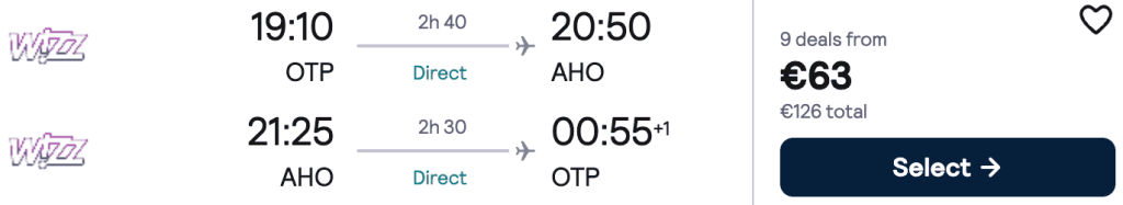 ZBOR: București -> Alghero, Preț dus-întors 63€/pers, 13-20 Mai 2026