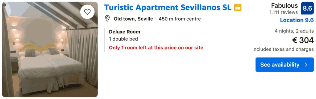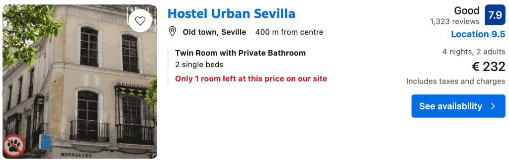 CAZARE 1: Urban Sevilla, Preț cameră dublă 232€, Preț persoană 116€, 2-6 Iun 2026 (4 nopți)