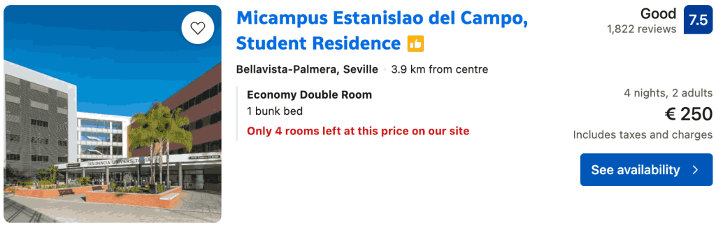 CAZARE 2: Micampus Estanislao del Campo, Preț cameră dublă 250€, Preț persoană 125€, 2-6 Iun 2026 (4 nopți)