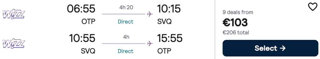 ZBOR: București -> Sevilla, Preț dus-întors 103€/pers, 2-6 Iun 2026
