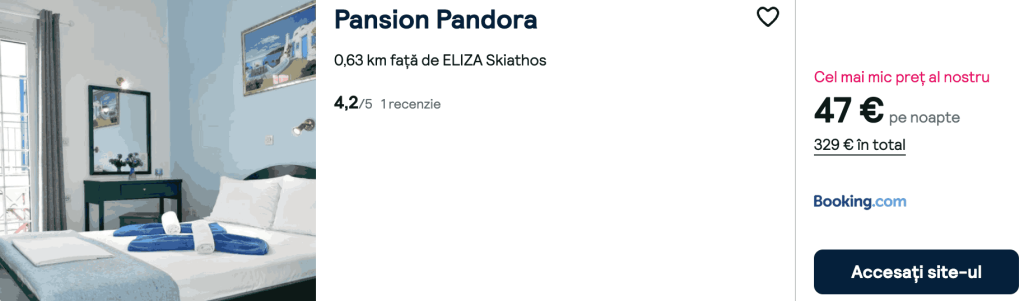 CAZARE 3: Pansion Pandora, Preț cameră dublă 329€, Preț persoană 165€, 21-28 Mai 2026 (7 nopți)