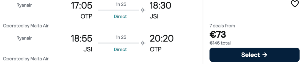 ZBOR: București -> Skiathos, Preț dus-întors 73€/pers, 21-28 Mai 2026