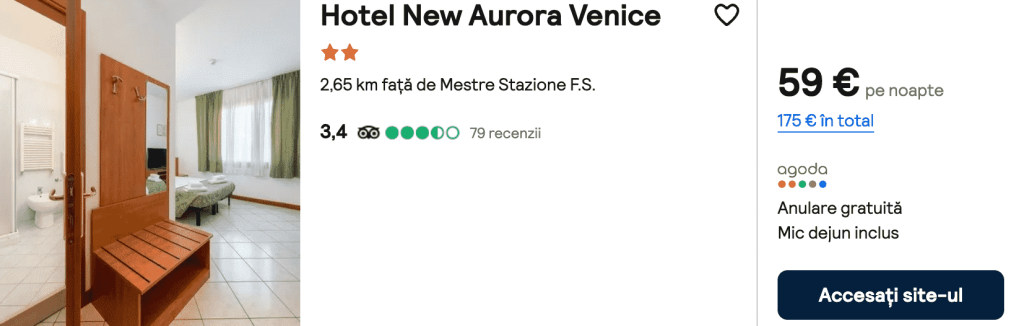 CAZARE 2 (+ mic dejun): New Aurora, Preț cameră dublă 175€, Preț persoană 88€, 10-13 Iun 2025 (3 nopți)