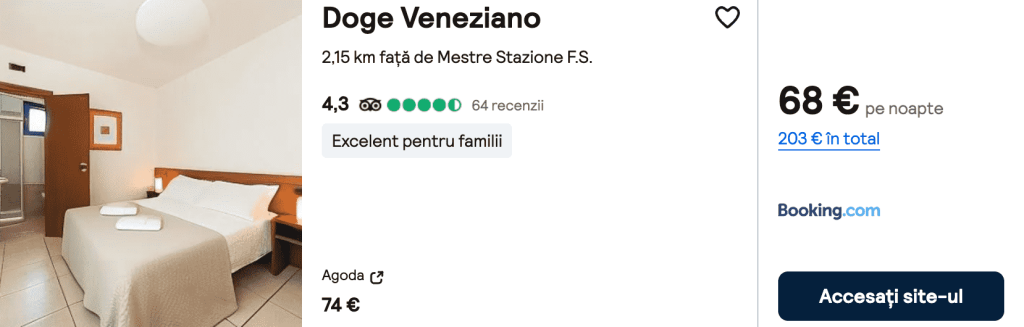 CAZARE 3: Doge Veneziano, Preț cameră dublă 203€, Preț persoană 102€, 10-13 Iun 2025 (3 nopți)
