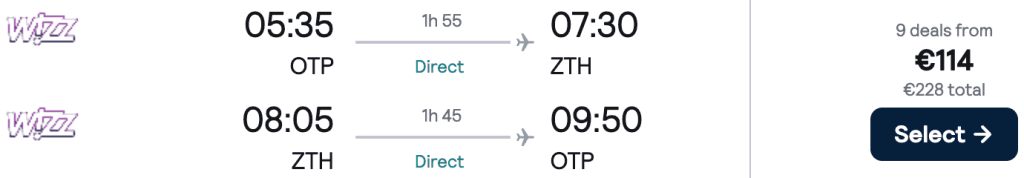 ZBOR: București -> Zakynthos, Preț dus-întors 114€/pers, 10-17 Iun 2026