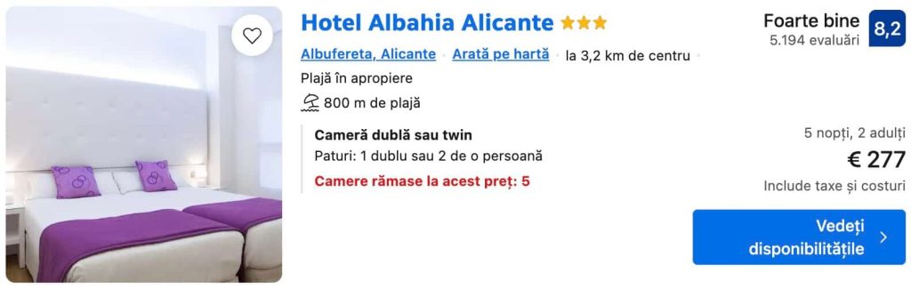 Rezervă din timp și te bucuri de cel mai mic preț! Hai în ALICANTE cu doar 254€ pentru zbor dus-întors și cazare 5 zile.