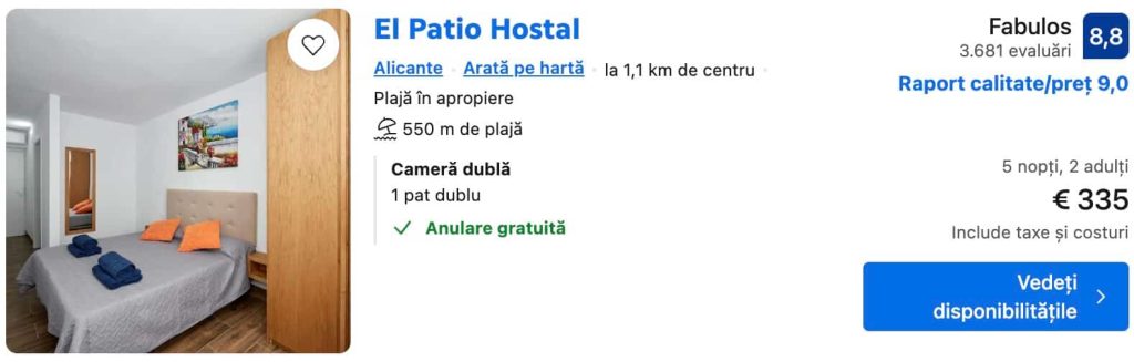 - Vacanță ieftină în ALICANTE 254€ zbor și cazare 5 zile