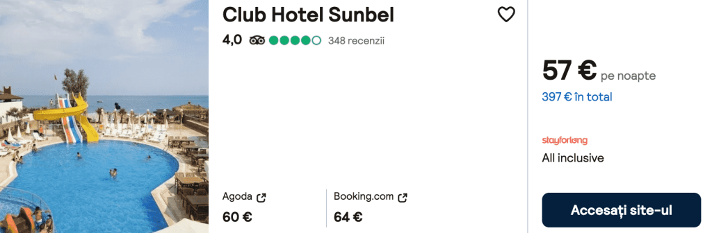CAZARE 2 (ALL INCLUSIVE): Club Hotel Sunbel, Preț cameră dublă 397€, Preț persoană 199€, 16-23 Oct 2025 (7 nopți)