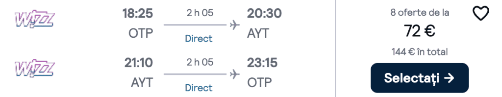ZBOR: București -> Antalya, Preț dus-întors 72€/pers, 16-23 Oct 2025