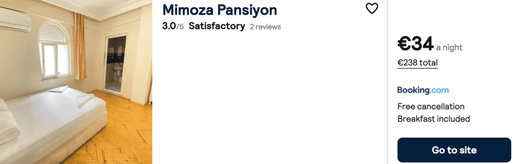 CAZARE 1 (+ Mic Dejun): Mimoza Pansiyon, Preț cameră dublă 238€, Preț persoană 119€, 24-31 Iul 2025 (7 nopți)