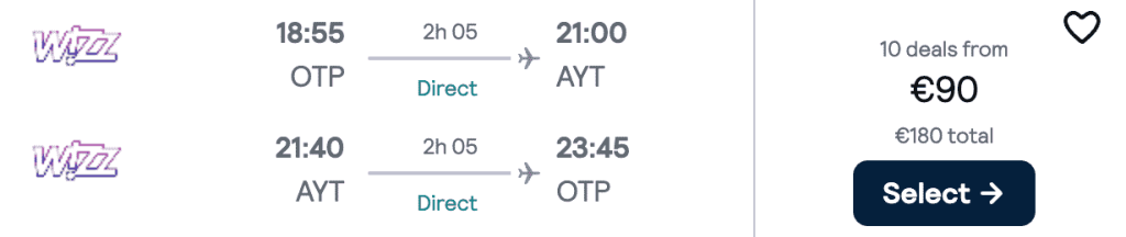 ZBOR: București -> Antalya, Preț dus-întors 90€/pers, 24-31 Iul 2025