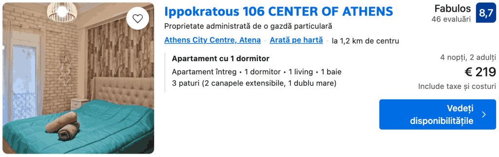 CAZARE 3: Ippokratous, Preț cameră dublă 219€, Preț persoană 110€, 7-11 Iun 2026 (4 nopți)
